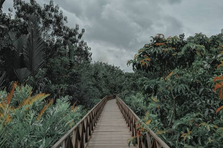 Pengunjung bisa menjelajahi hutan mangrove ini melalui jalur-jalur setapak yang telah disediakan, sambil menikmati udara segar dan pemandangan hijau yang menyejukkan mata.